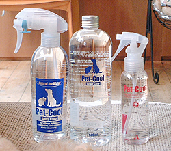 Pet-Cool(ペットクール) ブラッシングやお耳のおそうじなど、さまざまな毎日のお手入れに使用できる、ナチュラルイオン水のスプレーです。 |
